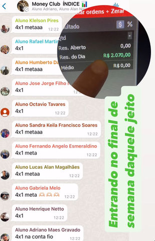 O professor está sempre lá para te mostrar como fazer as coisas no mercado financeiro. Ele é como um guia que te ajuda a entender quando é o momento certo para começar uma operação e quando é a hora de parar. E o melhor de tudo é que você pode assistir ao professor ao vivo de segunda a quinta, na sexta o aluno opera sozinho mostrando que aprendeu a executar o ensino sem auxílio do professor.